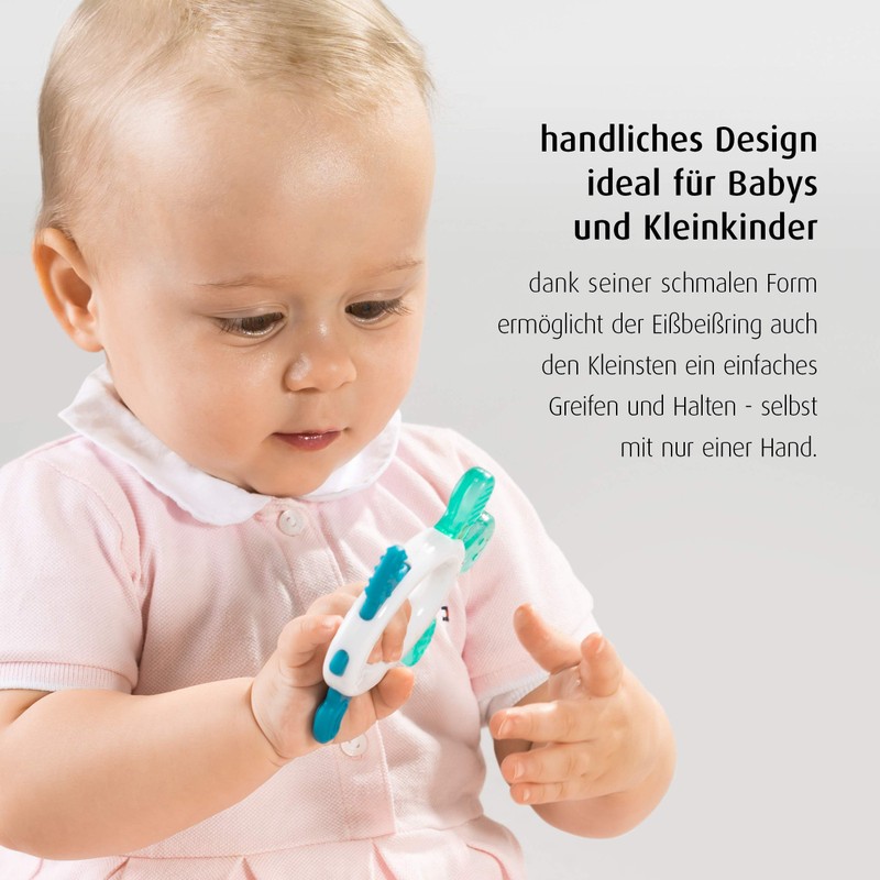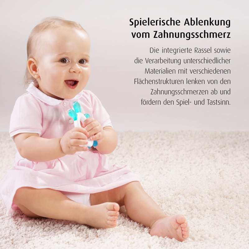 • The rattle and surface structure promotes the sense of play and touch. The water-filled elements ensure long-lasting cooling