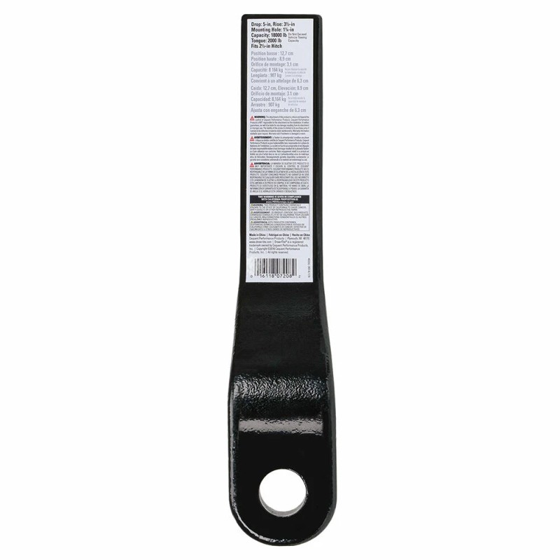 This REESE Towpower standard ball mount features a long 5 In. drop and a 3-1/2 In. rise. In the drop position, it is designed for towing loads up to 2,000 Lbs. TW, and up to 18,000 Lbs. GTW. It also features an attractive black powder coat, weather resistant finish.