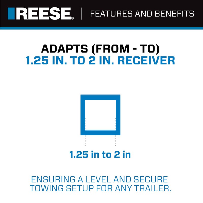 REESE Towpower 7020500 Trailer Hitch Receiver Adapter, Converts 1-1/4 Inch Square Receiver Opening to 2 Inch, 3,500 lbs. Capacity, 6 Inch Length