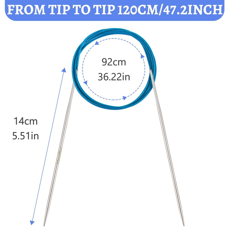 - [PROFESSIONAL CIRCULAR NEEDLES]: Each piece of knitting needles is carefully processed, the surface is smooth, the needles are perfectly tapered, the wool can pass through smoothly, the link between the cable and the needles are carefully processed smooth and fluid, won't snag the yarn, improve your knitting efficiency. The lightweight and smooth knitting feel also allows you to knit for hours with ease. Knitting beginners can also master this knitting skill easily.