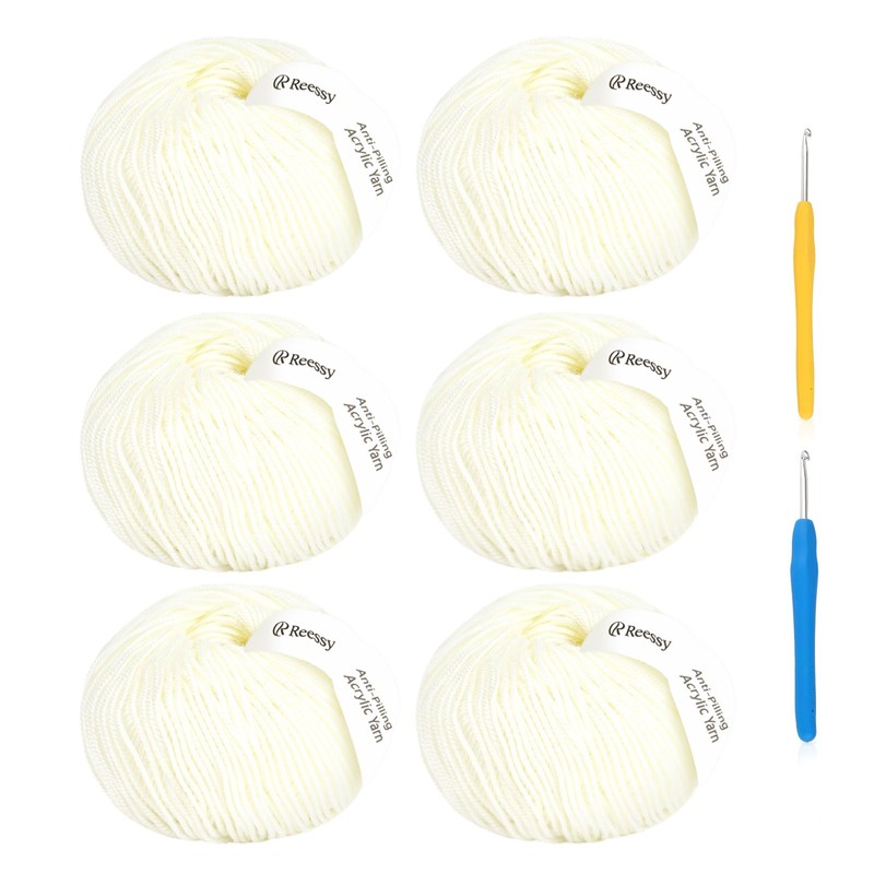 Reessy Acrylic Yarn for Crocheting - 6 Pack of 50g/1.76oz - Soft DK Weight Yarn (CYC #3), No-Splitting, Tightly Spun Acrylic for Smooth & Durable Crocheting – Toys, Scarves & Crafts(White)