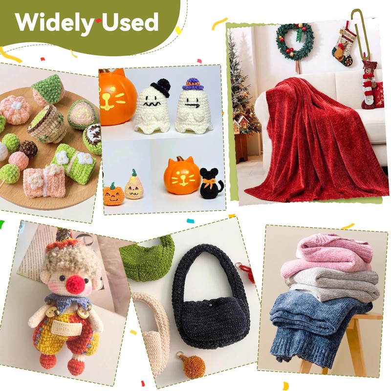- [Wide range of crochet]: This chenille yarn is very easy to crochet, Stitching is obvious and easy to follow, its fluffy and cosy feel is perfect for crocheting soft toys. The chenille yarn is super warm and suitable for knitting socks, scarves, blankets and other warm clothing in autumn and winter. You can use this cosy chenille yarn to knit cuddly soft toys and winter clothes for your family or friends, it is a perfect gift for your family and friends.