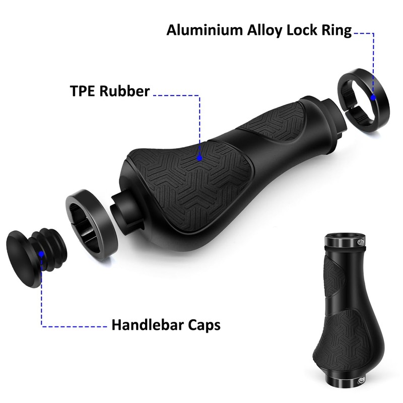 - TWO SIDES LOCKING The double-sided locking on both sides of the handlebar grips is durable, safe and not easy to push. If you have any questions about our bike handlebar grips, please feel free to contact us at any time. We are happy to solve the problem for you