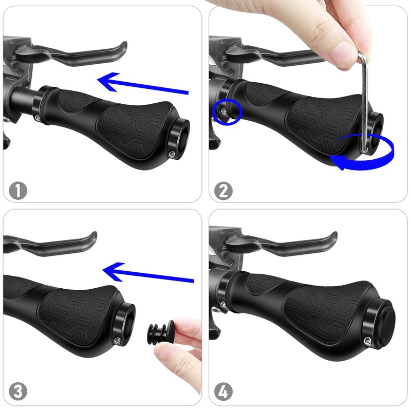 - Easy to assemble: bicycle grips, handlebar grips with installation tool, only Allen key required for quick removal and installation. Double locking made of aluminium alloy prevents the handles from loosening, ensures stability and shock absorption