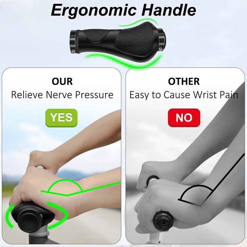- PERFECT GRIP The ergonomically designed anti-slip rubber MTB handle increases the contact surface of the hand and distributes pressure over a larger area. They can relieve pressure when driving long distance and prevent your hands from cramping or becoming numb