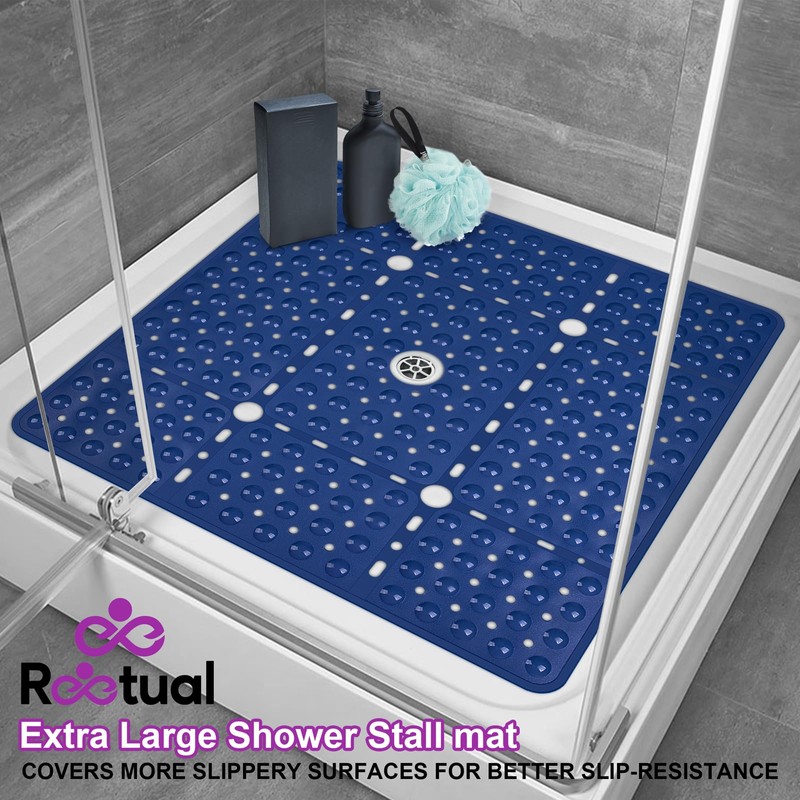 Reetual XL Shower Mat Non Slip - 27x27 Bath Mat for Shower Stall or Large Bathtub Mat with 240 Powerful Suction Cups and Drain Holes. Black Shower Mats for Bathroom