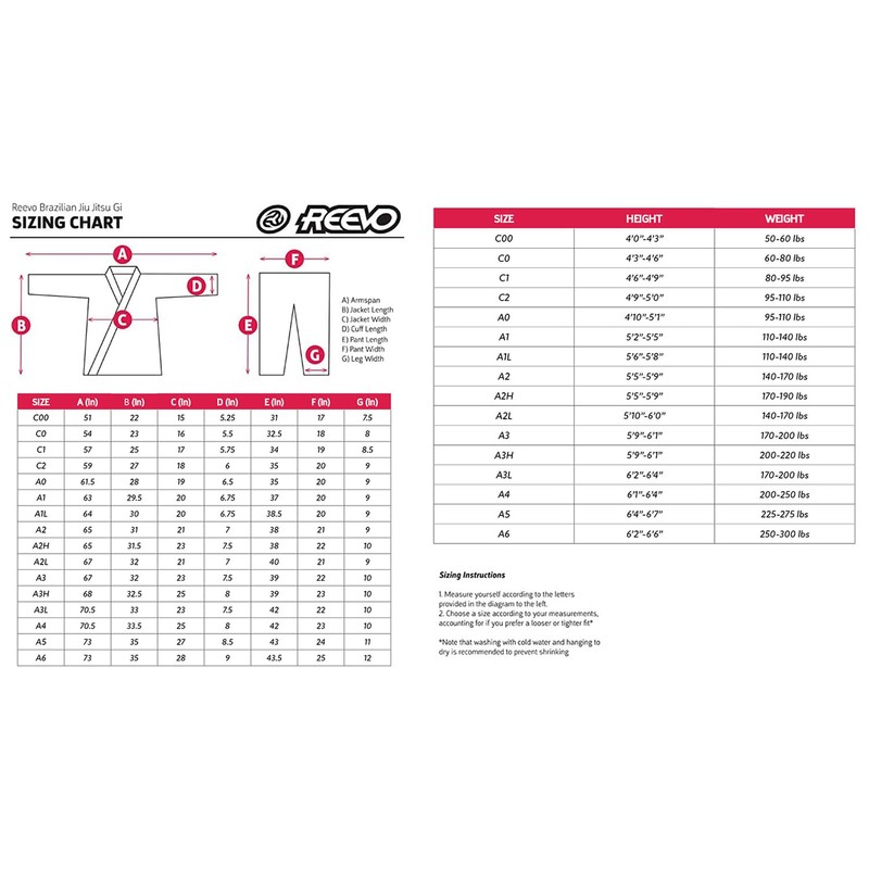 REEVO Ultralight BJJ Gi - Brazillian Jiu Jitsu Uniform w/Free White Belt Red A1L