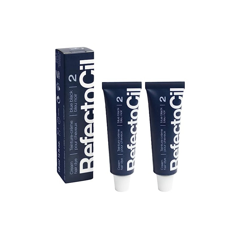 - 2-PACK. Includes 2x tubes of RefectoCil No. 2 Blue Black cream hair dyes.