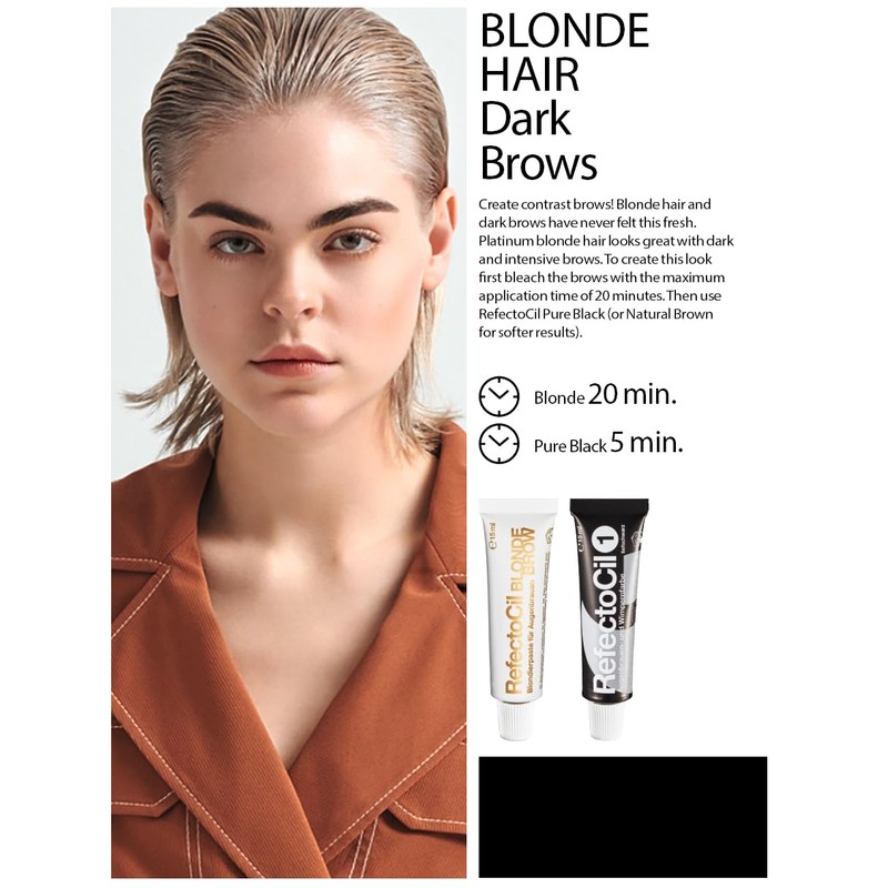 - REFECTOCIL NO. 1 PURE BLACK + #3 NATURAL BROWN. A powerful and versatile opaque brown that creates the most natural brunette look.