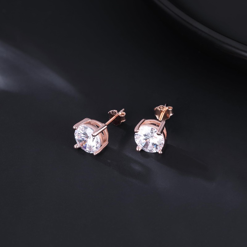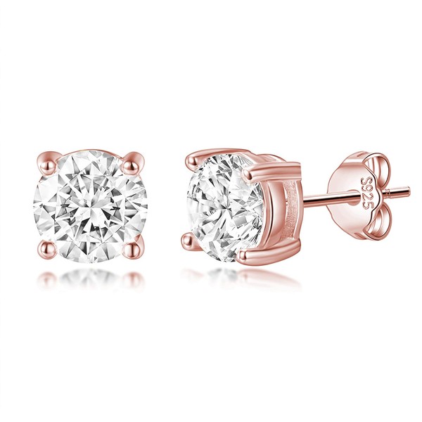 Reffeer Solid 925 Sterling Silver Cubic Zirconia Earrings Studs for Women Teens CZ Post Stud Earrings Hypoallergenic (C-Rose Gold)