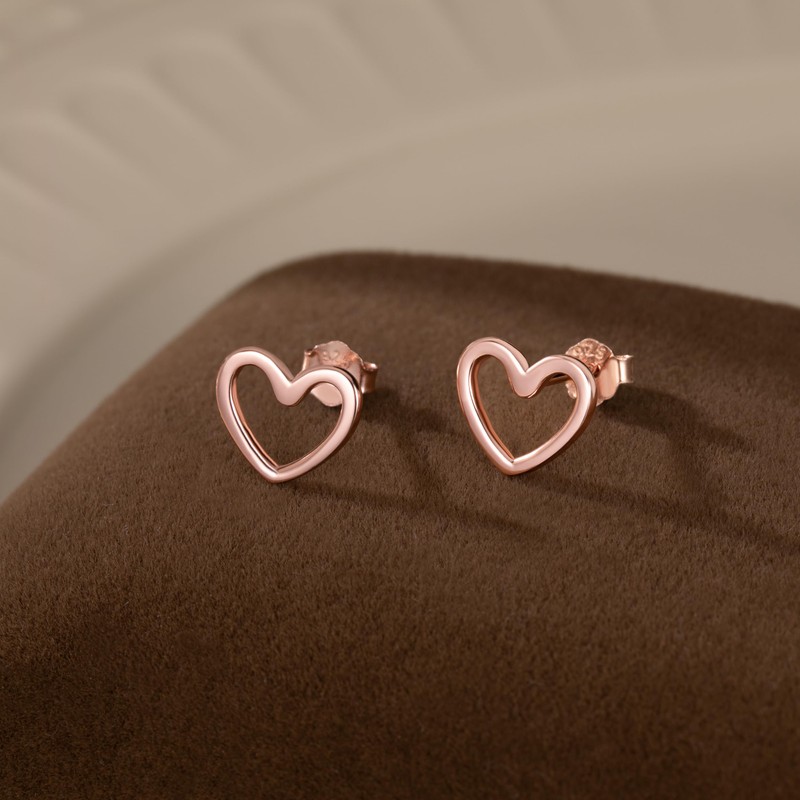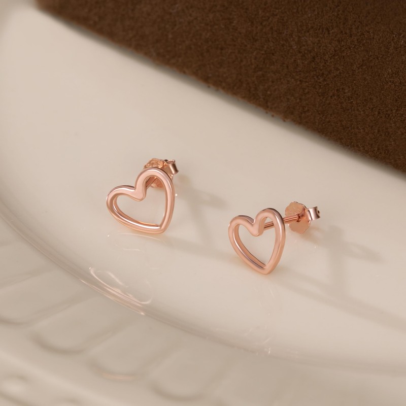 Reffeer Solid 925 Sterling Silver Open Heart Earrings Stud for Women Teens Cute Heart Stud Earrings Hypoallergenic (C-Rose Gold)