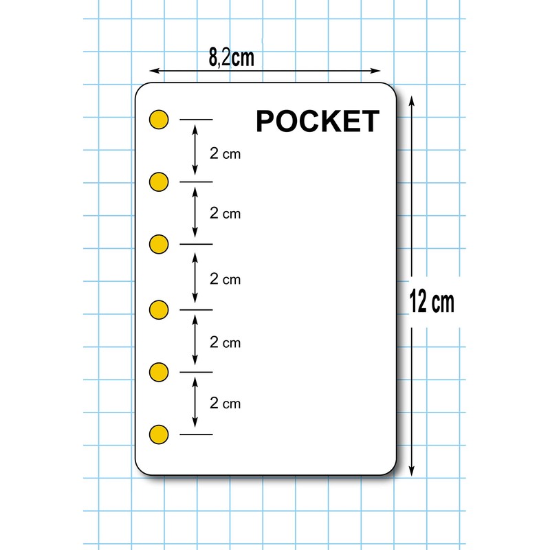 • 6 holes and rounded corners - ring spacing: 2 cm between the rings