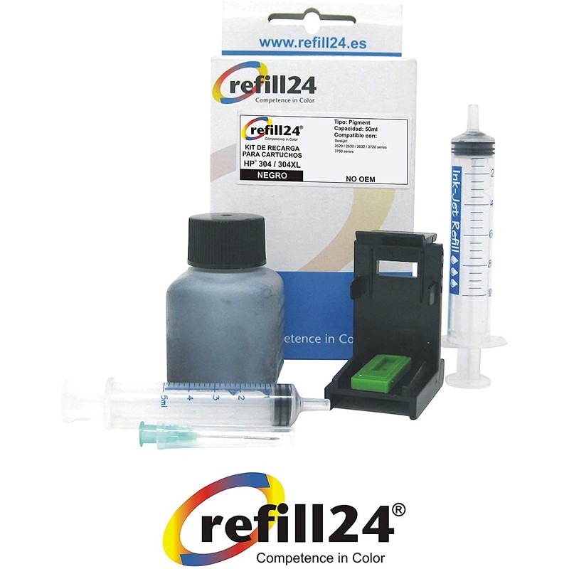 refill24 Refill Set: Refill Ink 50 ml Compatible with HP 304, 304 XL Black + Accessories + Printer Ink for DeskJet 2630, 3720, 3730, 3735, 3750, 3760, Envy 5020, 5030, 5032