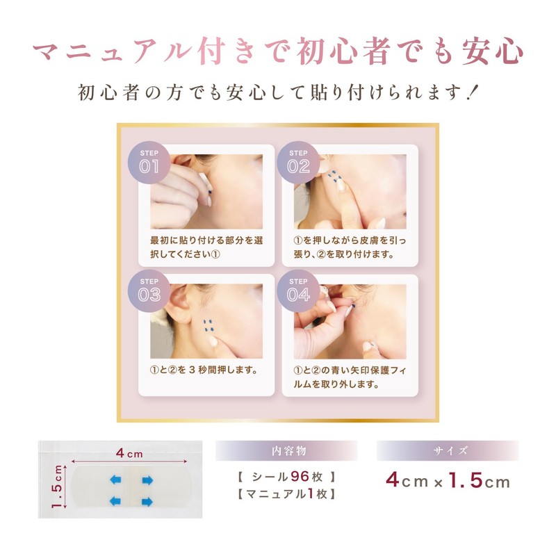 Ultra thin, transparent and inconspicuous facelift tape: Ultra thin 0.008 inch (0.02 mm) transparent tape that feels like your skin. It naturally adheres to your makeup and is difficult to stand out, so you can use it with confidence while you go out. It does not stand out even under makeup, and gives a natural "neat impression" look. Powerful lift for smaller face & face line correction: Firmly lifts up sagging and brushing lines. Use it on parts of concern, such as the face line, mouth, forehead, eyebrows, etc., for a tightened impression. Keep it all day in the morning: Simply apply it before makeup and it will look smaller for a long time. Naturally introduced to a landscape with confidence from every angle. Great for cosplay, photo shoots, recitals, etc. (98 pieces for excellent cost performance) Large capacity is perfect for those who want to use them everyday. You can reach just what you need, and carry it compactly when traveling or on the go. Change Your Impressions with Just Stick: When you want to create a sharp impression, or in the mornings you want a clean look. Just stick it to the area you are concerned about, and it will give your face line and facial expression. A secretly supportive item with a tight and secure fit. Great for weddings, photo shoots, and cosplay: Recommended for special occasions or for occasions where photos are concerned about. Instantly lifts & lifts wrinkles to create your ideal face line. (Precautions Before Use) If the skin has sebum, emulsion, and makeup residue left on the skin will lose its stickiness. Always clean before use, wipe away moisture and oil before use. Be careful of heat and humidity