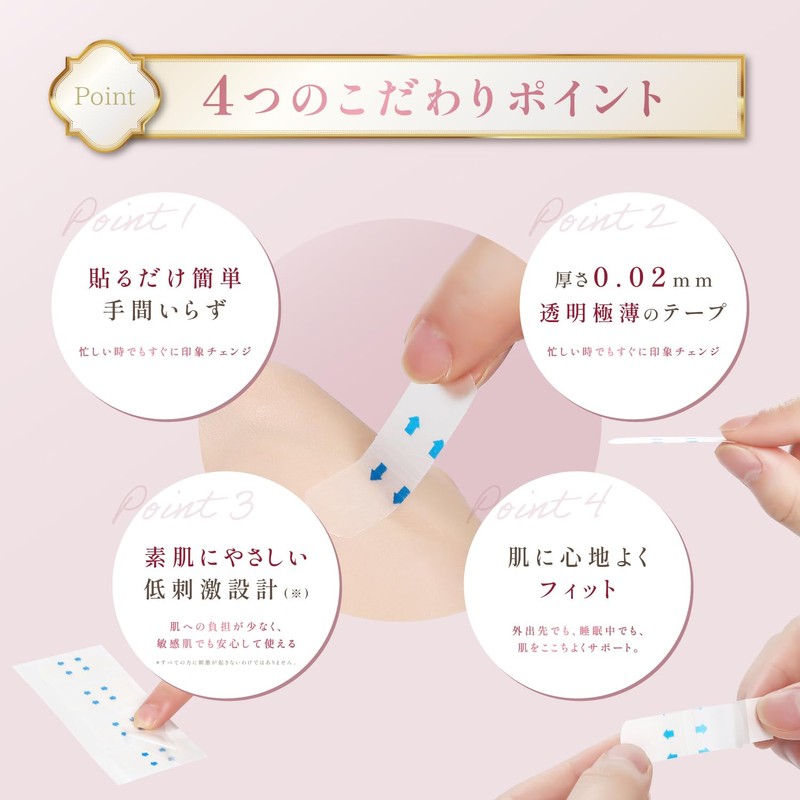 • Ultra thin, transparent and inconspicuous facelift tape: Ultra thin 0.008 inch (0.02 mm) transparent tape that feels like your skin. It naturally adheres to your makeup and is difficult to stand out, so you can use it with confidence while you go out. It does not stand out even under makeup, and gives a natural "neat impression" look