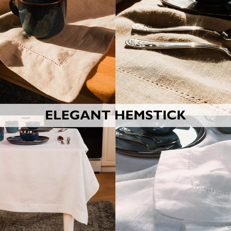 - MACHINE WASHABLE FABRIC: these premium natural linen tablecloths can be both hand-washed or machine-washed for easy care. Pure linen is naturally hypoallergenic and softens over time, making these table clothes a timelessly elegant feature for any kitchen or dining table.