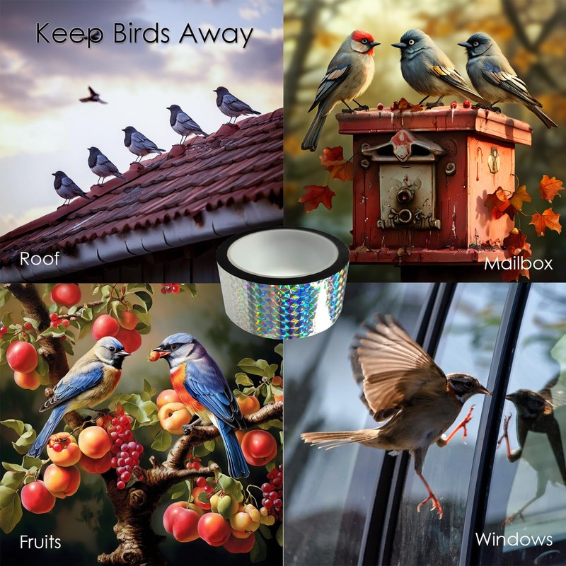 - Bird Scare Tape. You can stick it on the roof, mailbox, window, or other places to keep birds away.
