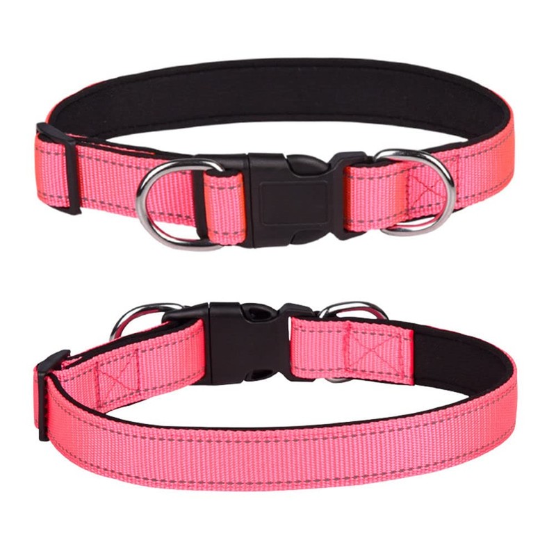 Reflective Dog Collars, Neoprene Padded Basic Durable Soft Nylon Puppy Collar Adjustable for Xs Small Medium Large Boy Girl Pet Dogs Cats, Pink+Hot Pink, S