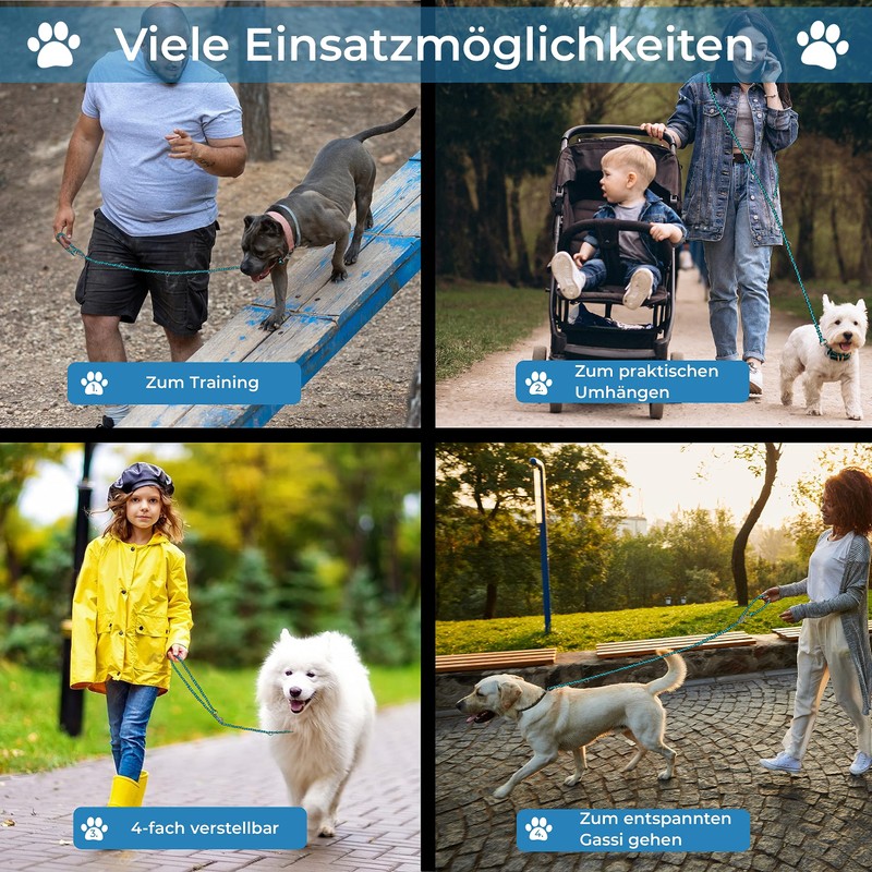 - 4 lengths and modern design: The running lead can be quickly and safely adjusted to 4 lengths and is therefore flexible. Our attractive colours give the lead an incomparably beautiful look.