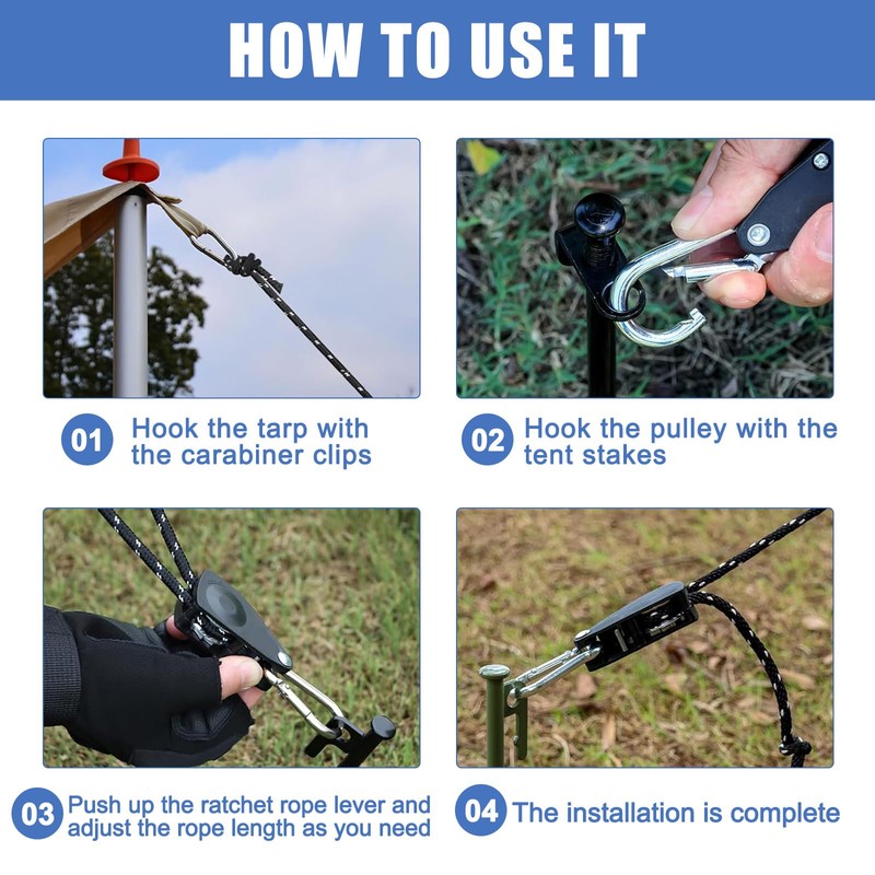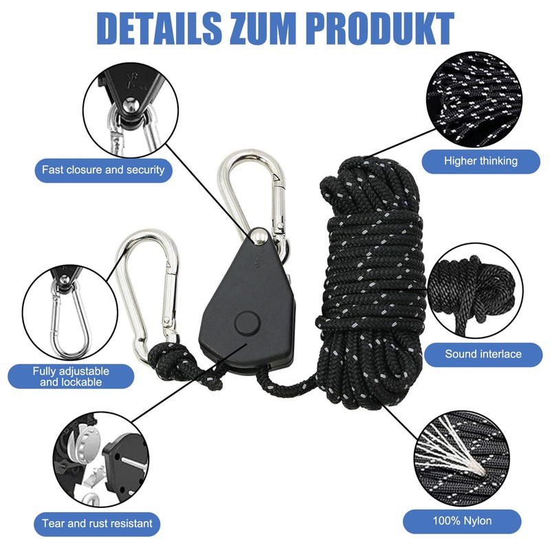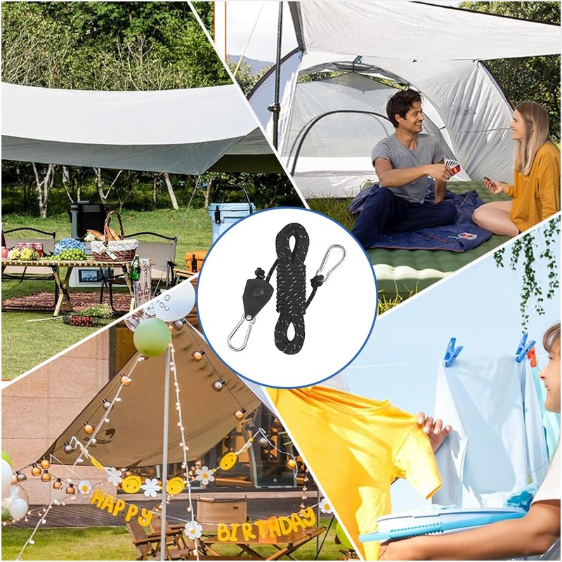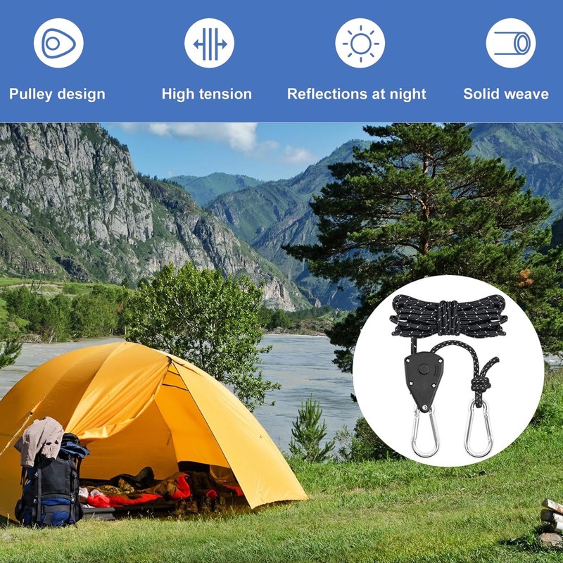 - Versatile application: this outdoor rope with ratchet is not only suitable for attaching tents, but also for various outdoor activities such as securing kayaks, hanging clothes or fixing luggage on vehicles. Perfect for camping, hiking and other adventures in nature.