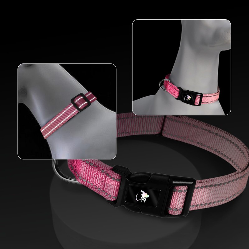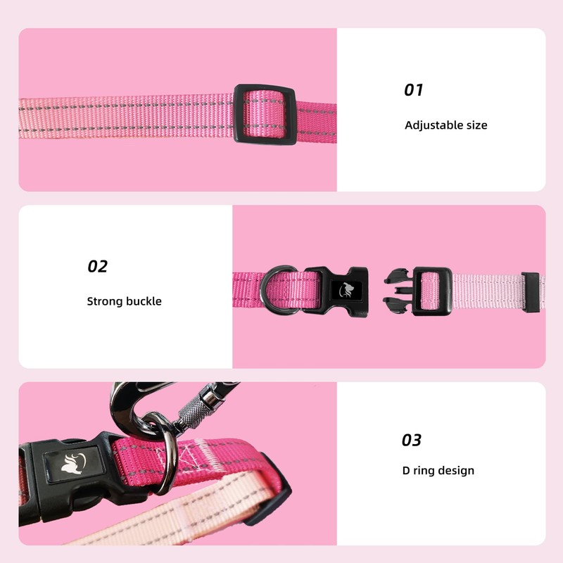 Reflective Nylon Pet Collar with Quick-Release Buckle – Adjustable, Durable, and Safe for Small, Medium, and Large Dogs (Gradient Pink, Medium)