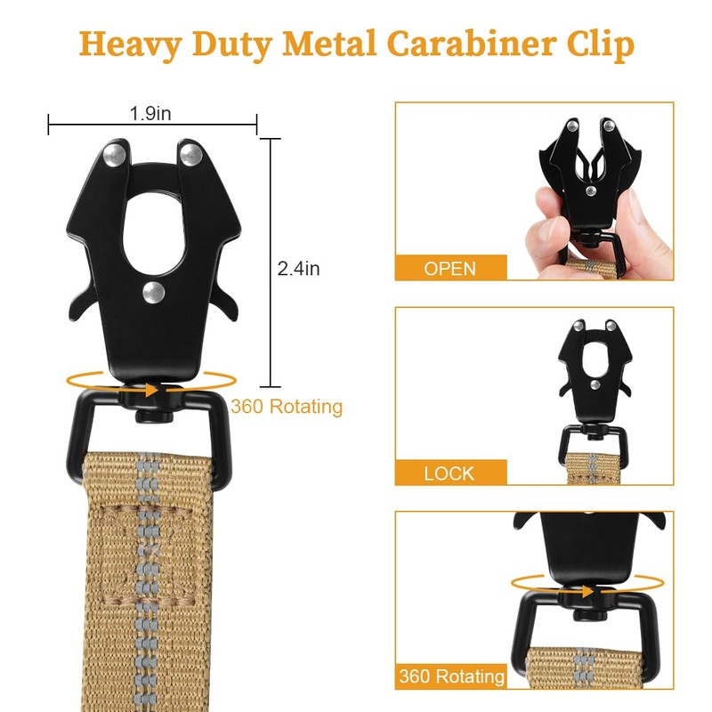 - 6FT SHOCK-ABSORBING BUNGEE FOR ROUGH TERRAIN: The 6-foot integrated bungee effectively absorbs shocks during treks over uneven ground or when your K9 navigates obstacles. This shock-absorbing feature reduces abrupt forces, aiding handler stability and K9 focus in challenging outdoor environments.