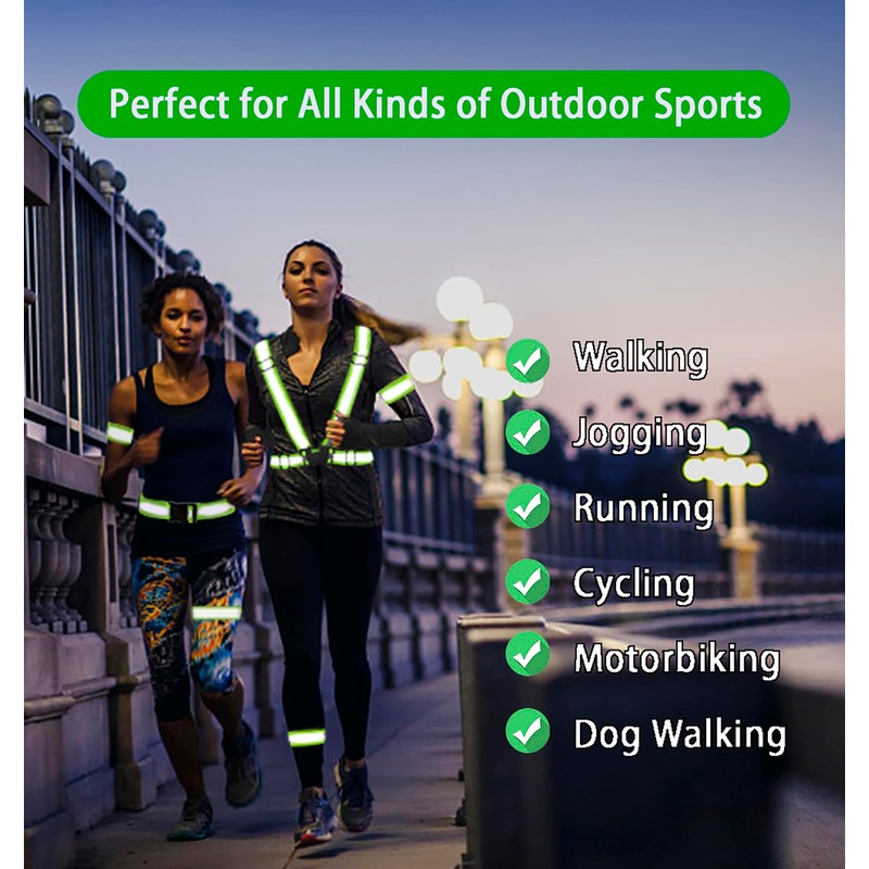 - 【Comfortable & Elastic & Adjustable】Reflective safety vest shoulder to waist expands from 13" to 21", waist circumference expands from 27" to 40"; Reflective belt waist circumference expands from 27" to 47",comes with 2 adjustable reflective bands suit for man/women/adult/teens.The light up vest is super stretchy to fit a coat, jacket, sweatshirt, or tank top.