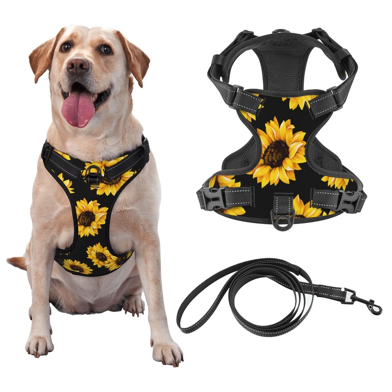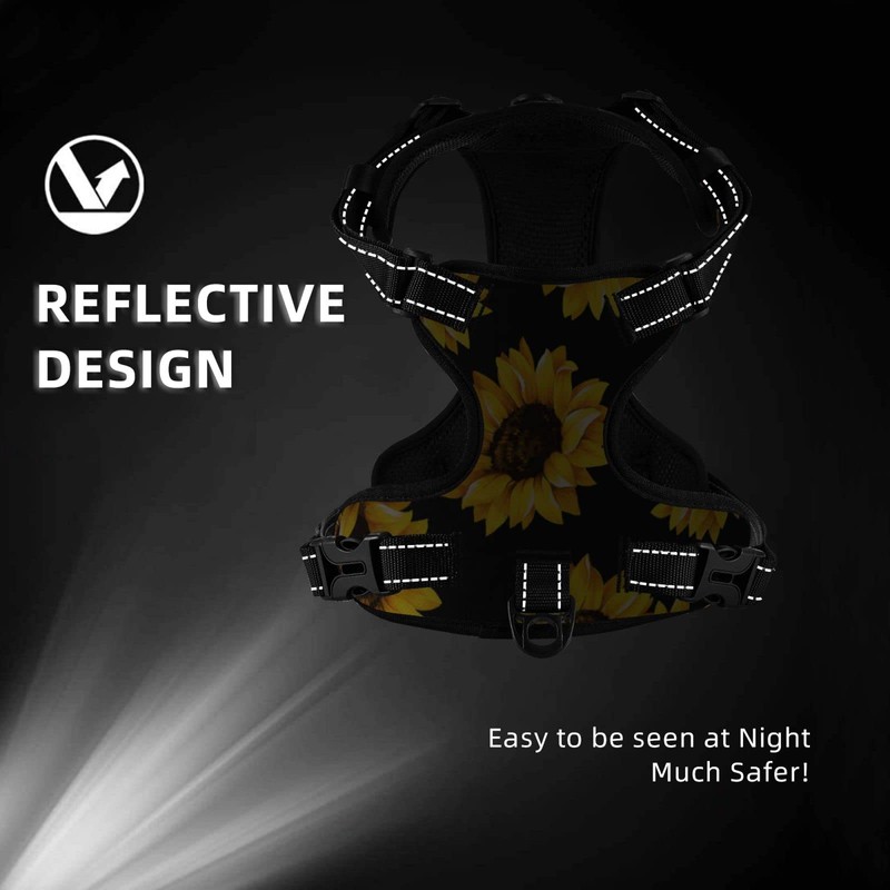 Reflective Vest Harness Autumn Sunflowers Adjustable No Pull Pet Harness Styl...
