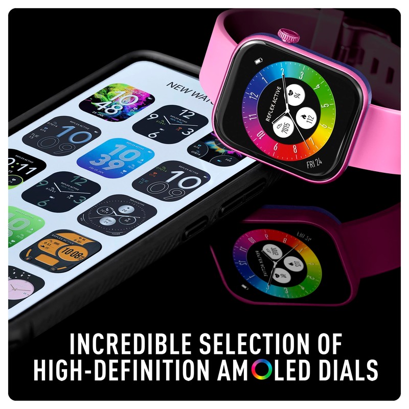 - Experience Reflex Active in ultra-high definition with our Series 40 AMOLED smart watch. Enjoy an amazing collection of exclusive dials on the 1.85'' AMOLED display with exceptional clarity and incredible colour reproduction. Innovative additional benefits include Always-On display, meaning you no longer need to touch your watch or lift your arm to activate the display and our Dual-Time feature shows the time home and away, to ensure you always keep on track while traveling.