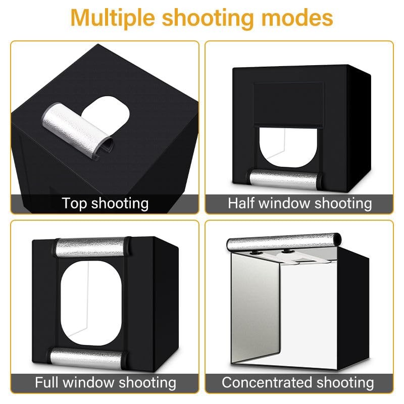 - [Multi-Angle Shooting Windows] Shoot from various angles (front, side, top) to showcase products creatively.