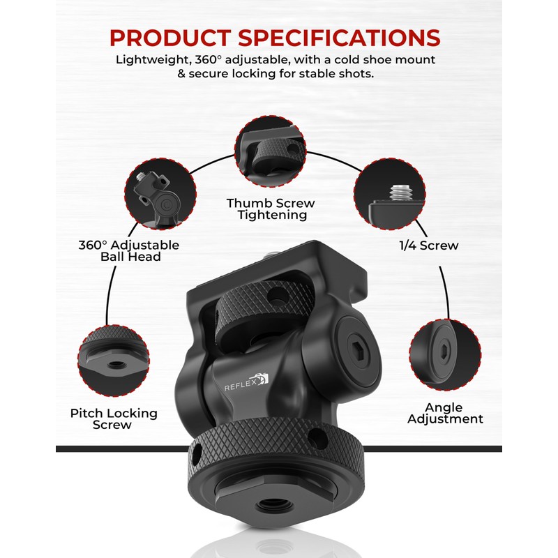 REFLEX CAMERA Camera Monitor Mount with Cold Shoe, 360 Degree Swivel & 180 Degree Tilt Adjustable DSLR Mount Compatible with 5” & 7” Field Monitor - 1/4” Screw & Locating Pin, 2.5Kg Load Capacity