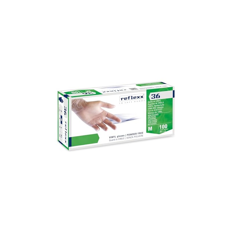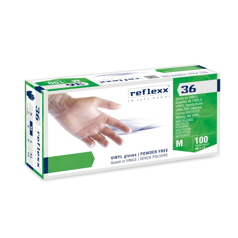 Reflexx R36 Powder Free Vinyl Gloves, Medium, Clear, 100