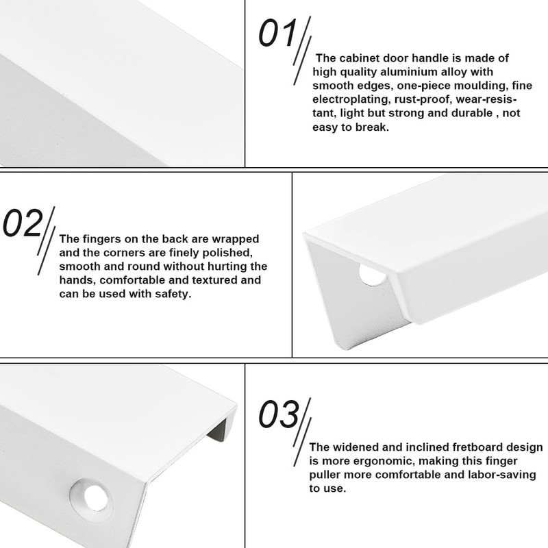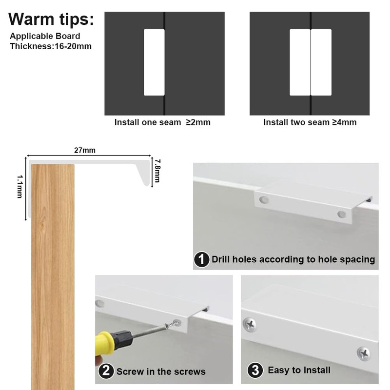 - 【Comes with screws and is easy to install】: each hidden finger edge handle comes with 2 screws. Use a screwdriver to easily install thin plates, and drill holes to maintain the beauty and integrity of the surface. Easy installation, even for inexperienced people, the installation is done in seconds.