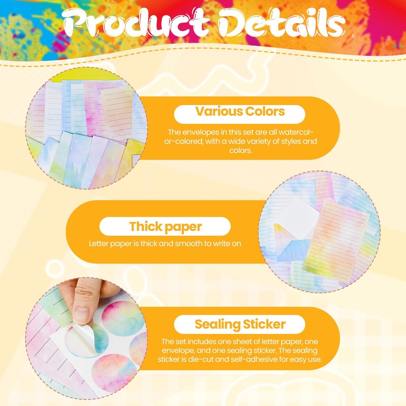 • Exquisite design & 10 styles: You will receive 50 high-quality stationery sheets in 10 unique watercolour designs - perfect for individual occasions! Includes 50 matching envelopes (14.5 x 11 cm), 50 writing paper (14 x 21 cm) and 60 decorative seal stickers (3.5 x 3.5 cm). Ideal for handwritten letters, invitations or creative projects.