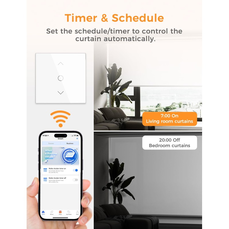 • Compact design and touch screen control: the compact design of the roller shutter control unit with the dimensions 8 x 8 cm is not only practical, but also fits stylishly into any window decoration. At the same time, the intuitive touch screen operation allows easy control of the curtains by simple gestures. The touch screen design is user-friendly and offers you a convenient way to flexibly control your curtains.