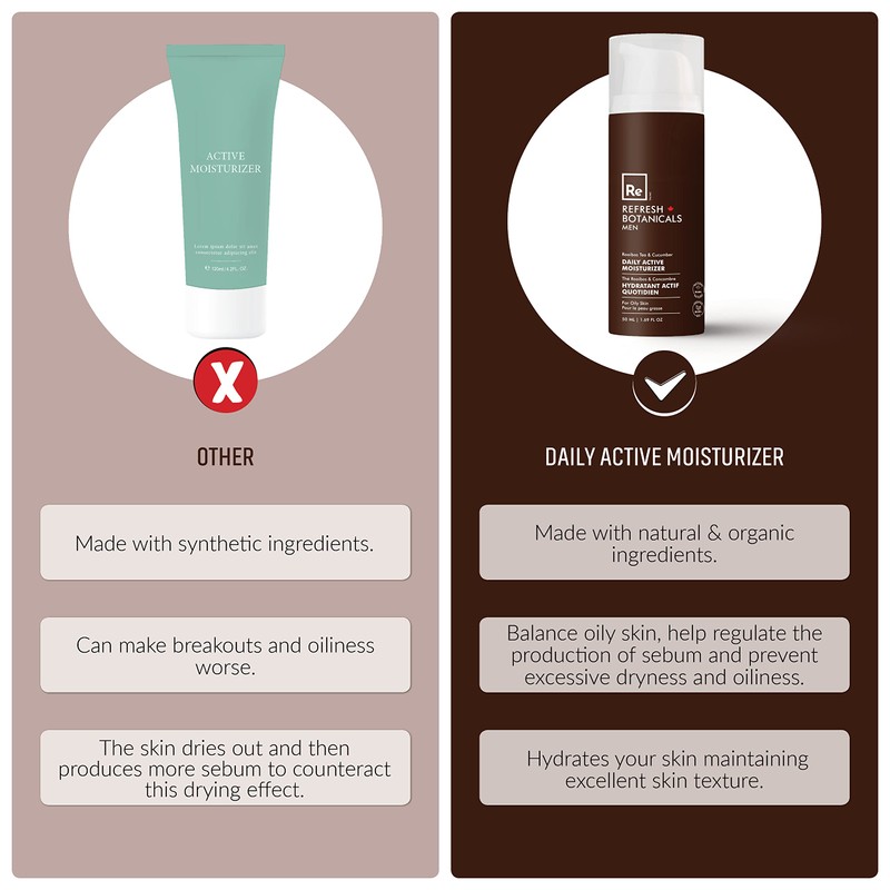Refresh Botanicals Refresh Botanicals Daily Active Moisturizer for Oily Skin | Derived from Fresh and Hydrating Cucumber & Rooibos Tea | Men Facial Moisturizer for Long Lasting Hydration and Youthful Glow | 1.69 Oz