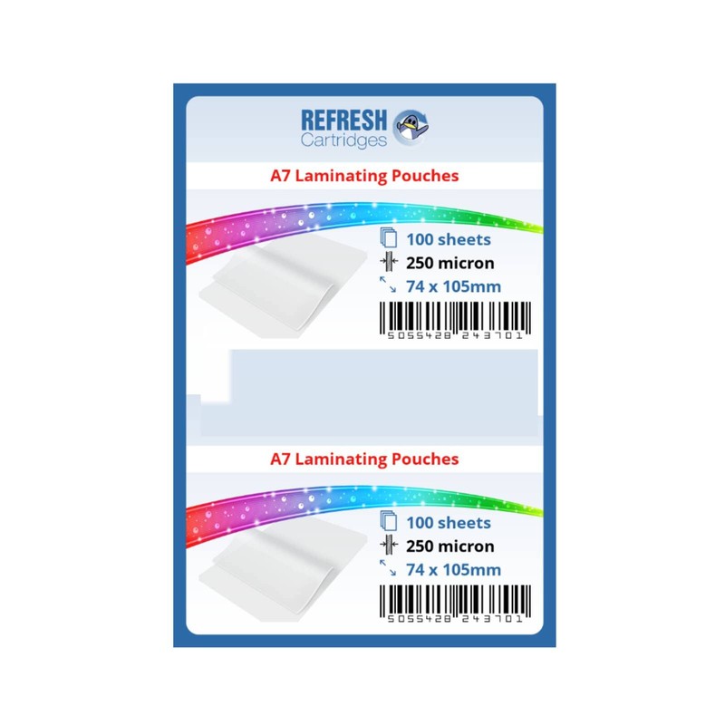 Refresh Cartridges - Laminating Pouches A7 (80x111mm) 250 Micron Pack of 100 Sheets