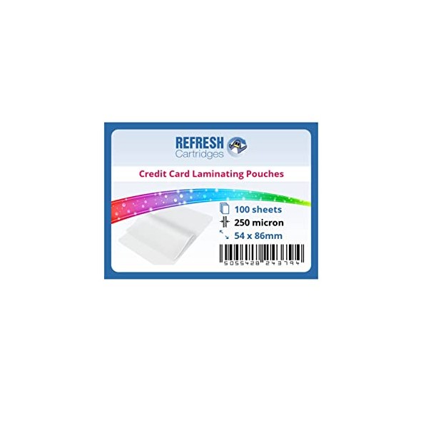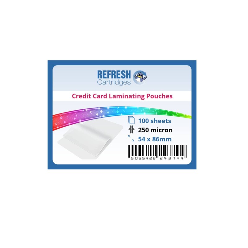 Refresh Cartridges - Laminating Pouches Credit Card (54x86mm) 250 Micron Pack of 100 Sheets