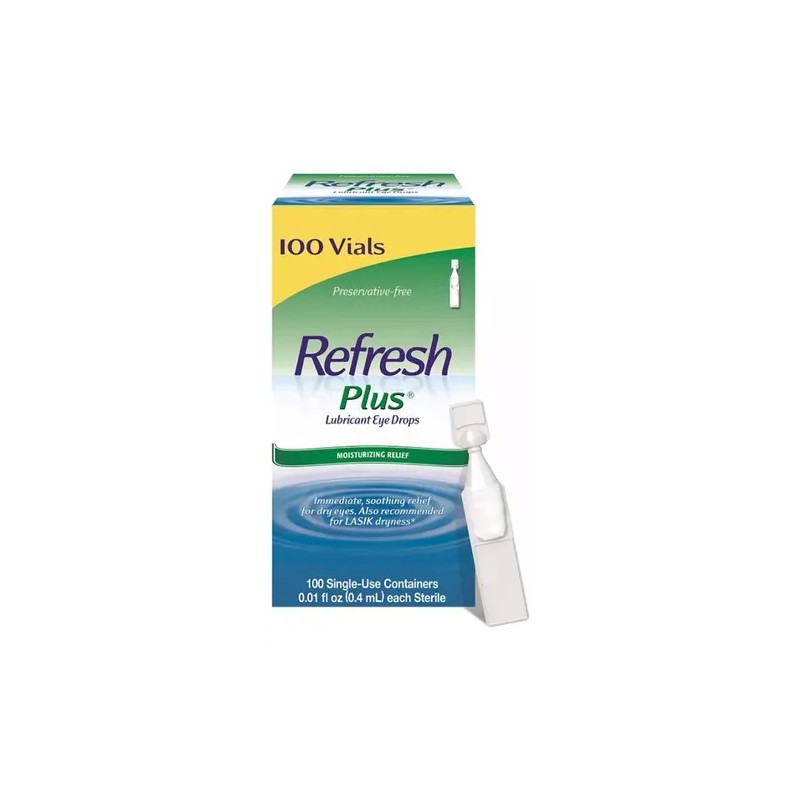 Las gotas lubricantes para ojos REFRESH PLUS® humectan instantáneamente para proporcionar un alivio inmediato y duradero para los ojos secos, irritados y sensibles. Viene en viales de un solo uso sin conservantes y tiene muchas de las mismas cualidades saludables que sus propias lágrimas naturales.