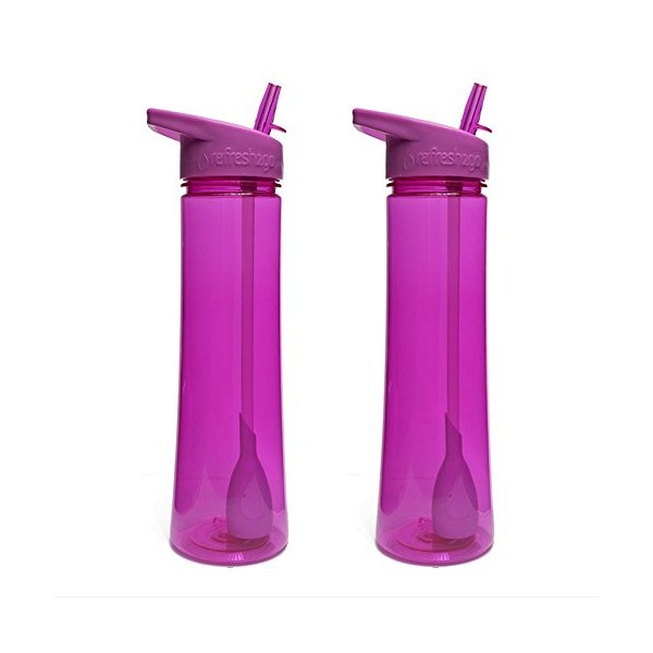 refresh2go 1050-P-2pk Sleek Pink 2 Filtered Water Bottle, 2-Pack, Royal 22 oz