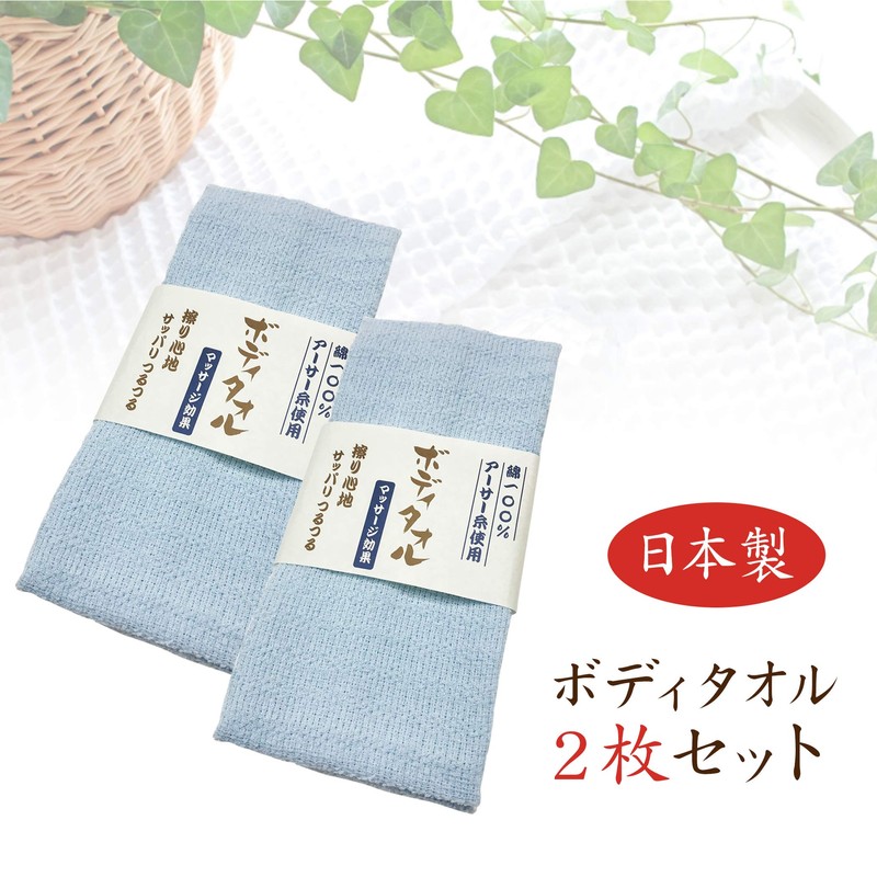 Refreshing Body Towel, Made in Japan, Body Towel, Foaming, Soft, Refreshing, Body Washing, Improves Circulation, Natural Material, For Baths, 100% Cotton (Blue (Set of 2)