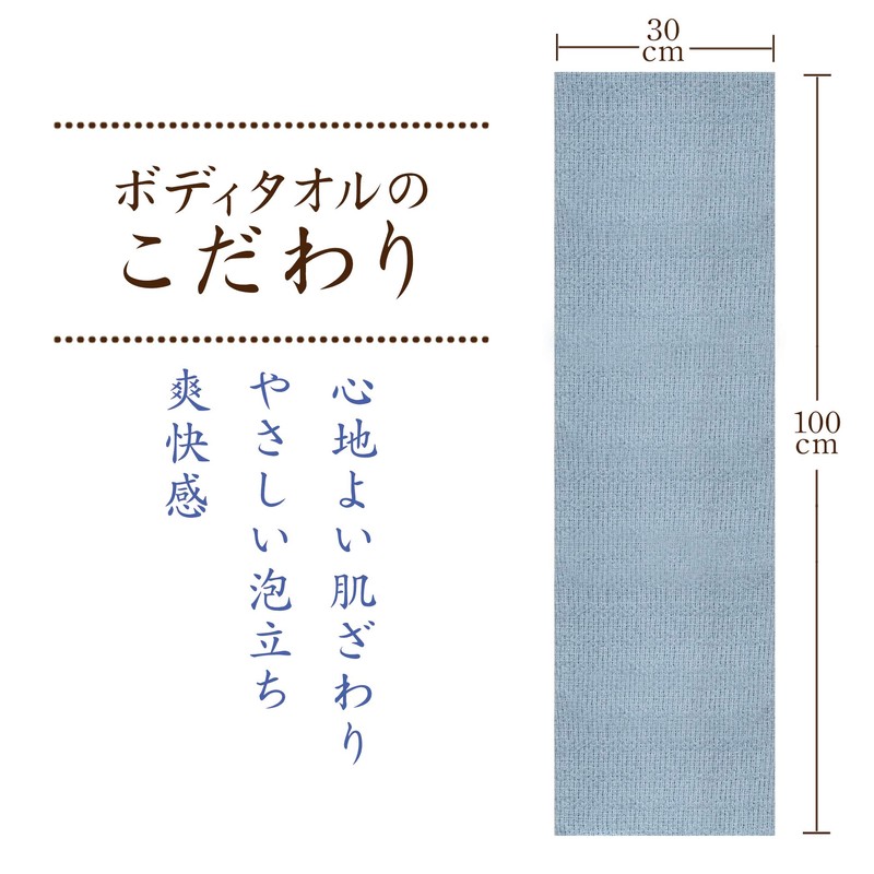 - (Natural and Gentle Body Towel) Made in Japan 100% cotton. Non-fluorescent, unbleached, skin and environment friendly