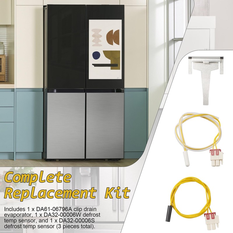 - Complete Replacement Kit – Includes 1 x DA61-06796A clip drain evaporator, 1 x DA32-00006W defrost temp sensor, and 1 x DA32-00006S defrost temp sensor (3 pieces total). Ideal for hassle-free refrigerator repairs
