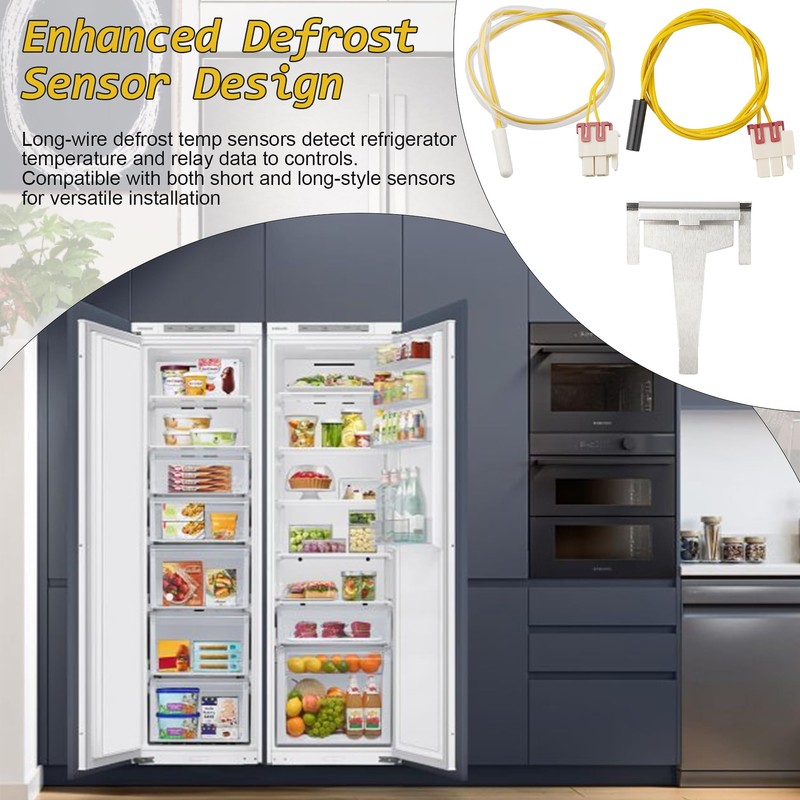 - Enhanced Defrost Sensor Design – Long-wire defrost temp sensors detect refrigerator temperature and relay data to controls. Compatible with both short and long-style sensors for versatile installation