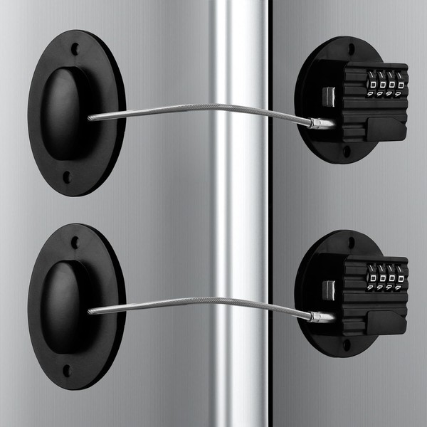Refrigerator Lock with Combination, Keyless Security Lock for Freezers, Cabinets, Drawers, Easy Installation (2, Black)