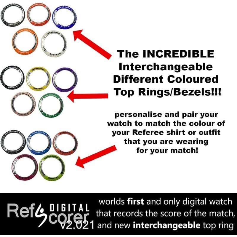 - 驚異的な交換可能なカスタマイズ可能な異なる色のトップリング/ベゼル!!! – 試合で着用しているレフェリーシャツや服の色に合わせて、時計をパーソナライズしてペアリングしましょう。 (5個パック別売)