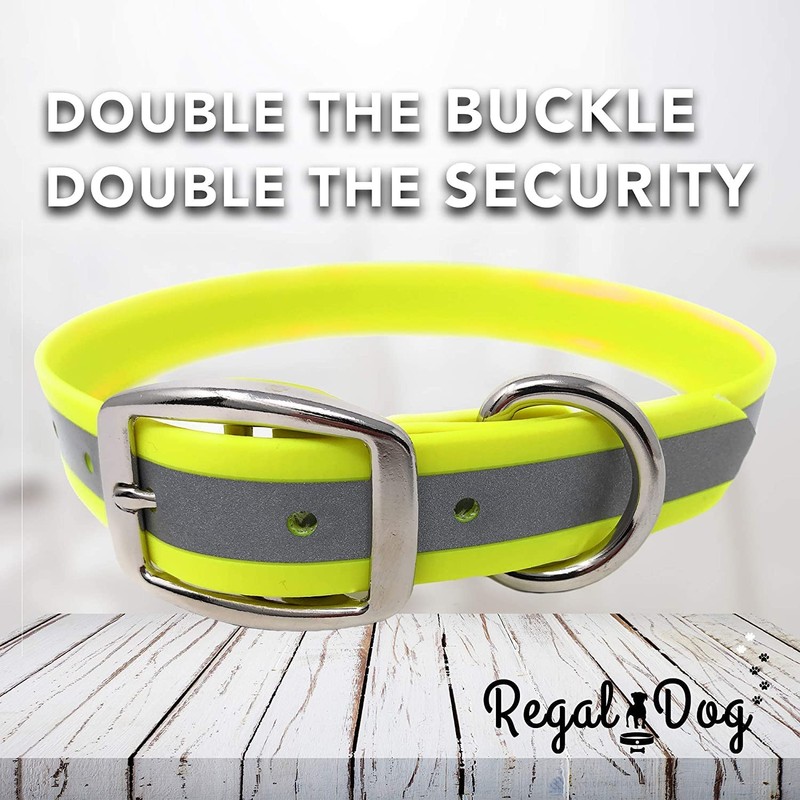 - SAFETY AFTER SUNDOWN – Walking your dog in the dark is dangerous. Fetch some safety for both you and your furry friend with the Reflective Dog Collar by Regal Dog Products! As cars pass, the highly reflective strip notifies drivers of your presence so they can safely steer clear.