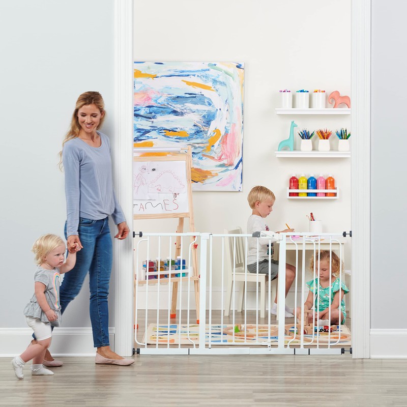 Regalo Regalo 56-Inch Extra WideSpan Walk Through Baby Gate, Includes 4-Inch, 8-Inch and 12-Inch Extension, 8 Piece Set - 4 Pack of Pressure Mounts and 4 Pack of Wall Cups and Mounting Kit, White
