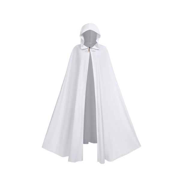 Regenboog Renaissance Cloak Men Women,Medieval Hobbit Cloak,Adult Victorian Cape with Hood,Short Velvet Cape,White,51inch