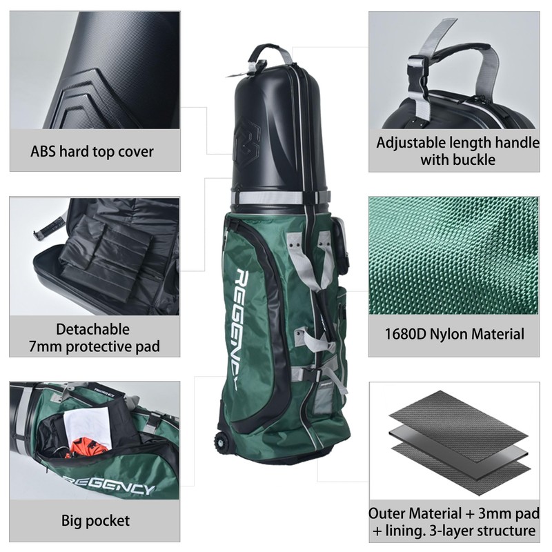 Regency ABS Golf Hard Case Travel Bag - Airline Approved, Wheels, 6 Pockets (ABS Cover, 7mm Pad, 3-Layer Protection)